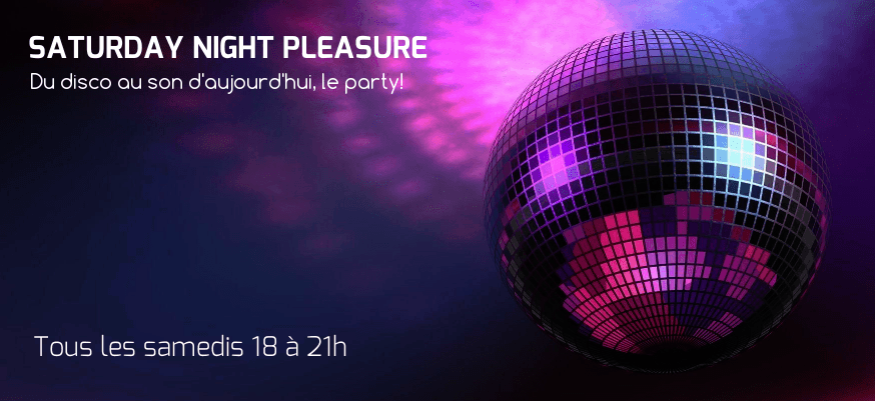 Tous les samedis soir place à la cadence musical intense! Saturday Night Pleasure est ce complèment vitaminé essentiel à vos samedis soirs! Voyagez dans les années 70-80-90 et d'aujourd'hui et naviguez plaisir vers d'inoubliables sphères musicales. BON PARTY! Cliquez ici pour écouter Fréquence-Plaisir ou ici pour choisir votre player préféré.